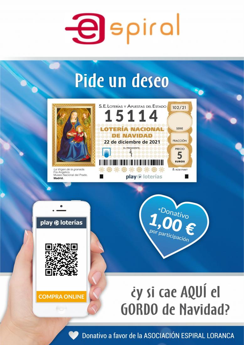 Para este Sorteo de Navidad, repetimos con el número 15114, y las participaciones tienen un coste de 5€, siendo 1€ de donativo para los proyectos sociales de Espiral.